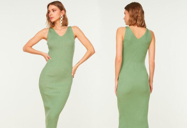 Bodycon Dresses: A fitted bodycon silhouette adds structure to the pear-shaped body figure and highlights the natural wide hip circumference in a flattering way.