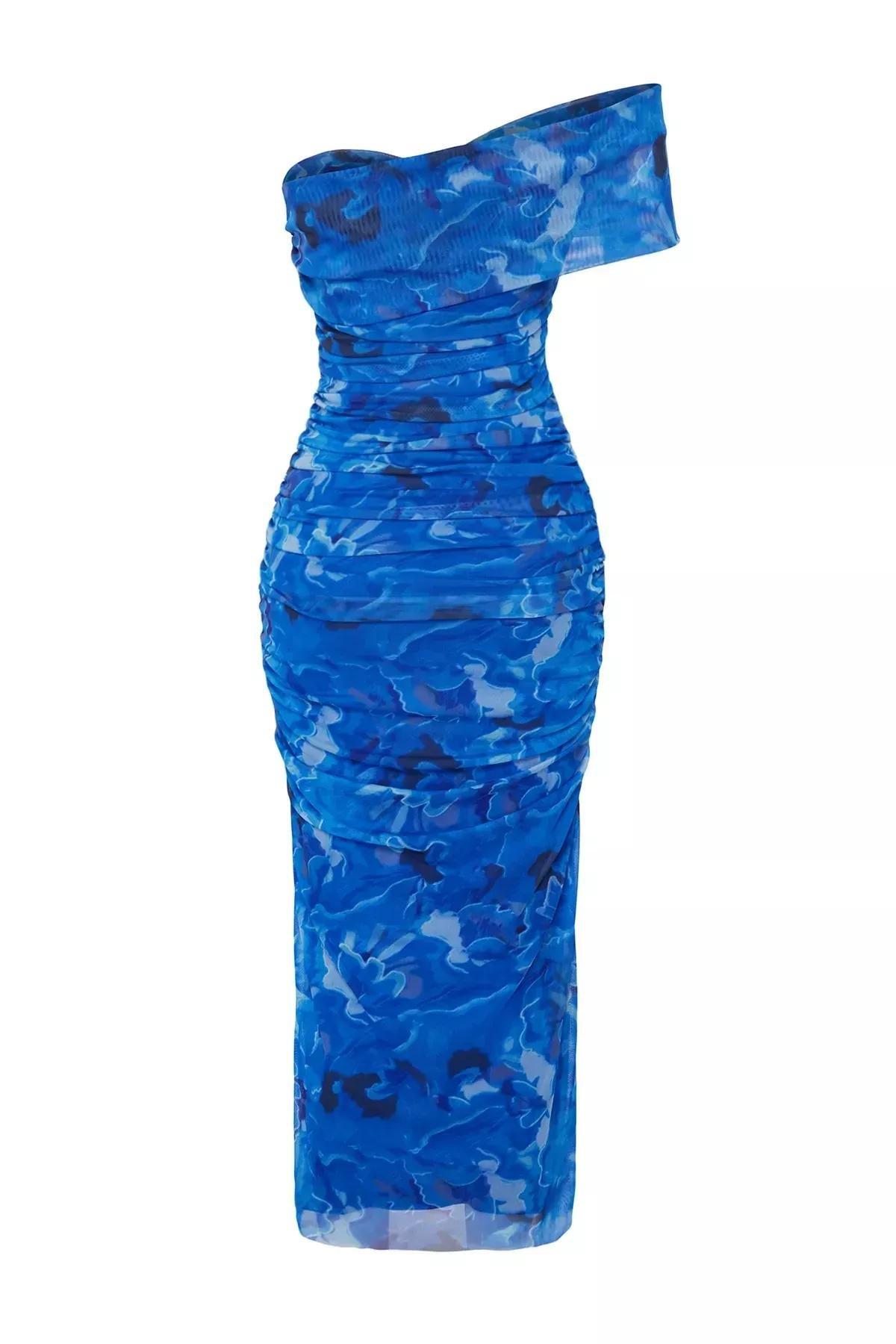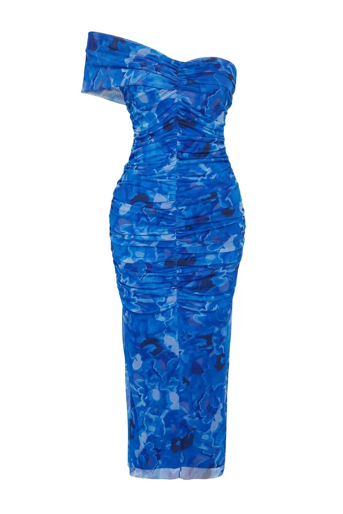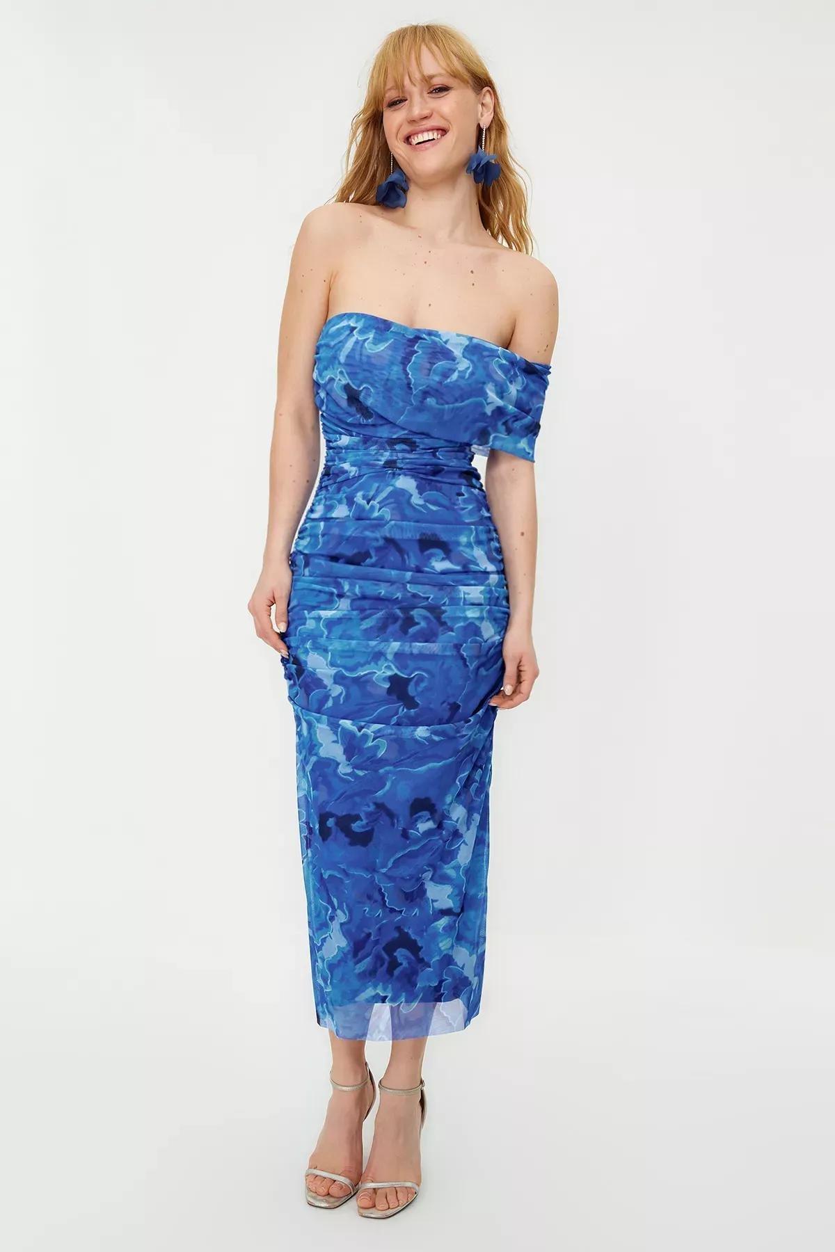 Multicolour Carmen Collar Lined Tulle Dress
